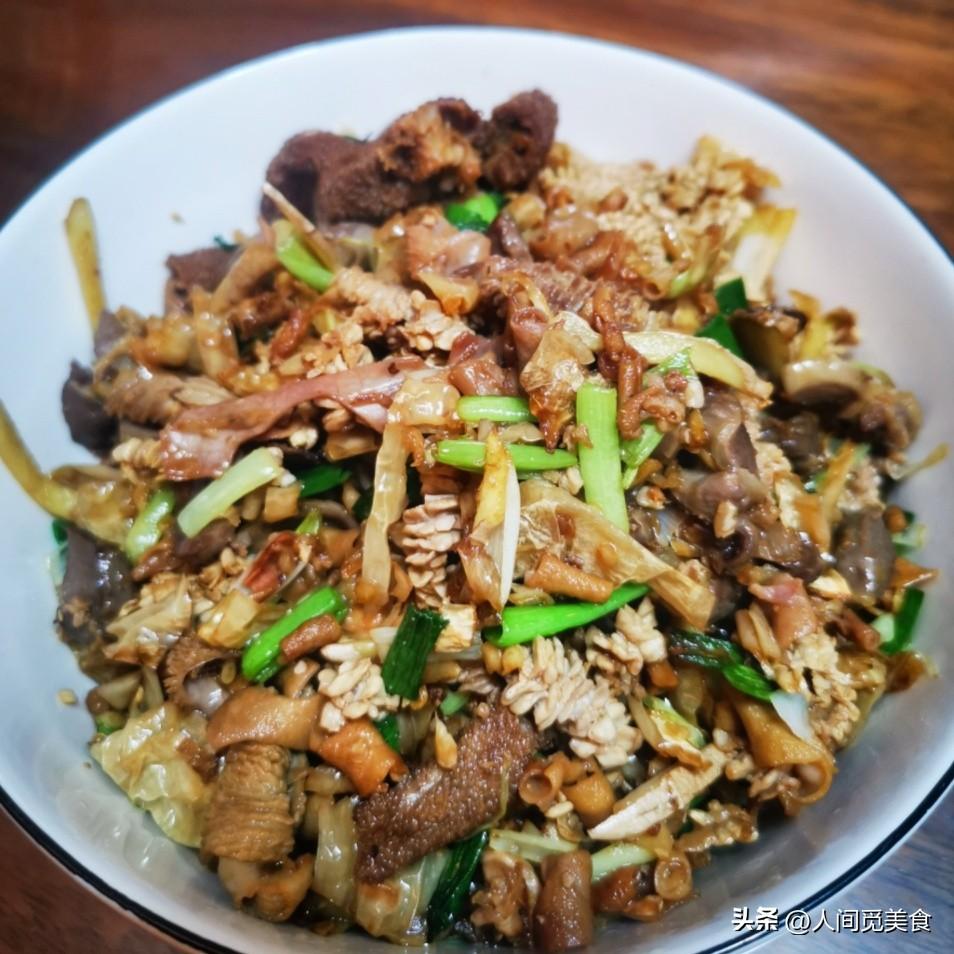 除了炒青椒之外,还可以搭配土豆一起炒,张妈妈买的高山土豆特别入味,绵实而爽口,浸透了猪油的香味炒出来更好吃了。炒杂碎看着不起眼,其实内容很丰富,大蒜和蒜苗炒各种内脏,有鸡肠、鸡胗、肚、牛肚等等,炒得特别入味,里面还加了泡姜泡椒和泡菜,酸酸辣辣的又是一道开胃家常菜。