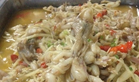 内江市里面的浩浩水鲜,虹桥中路的三样菜,也都是吃蛙的好店。三样菜只卖三样菜,青蛙、鳝鱼和泥鳅。全都是田里出产的鲜货。