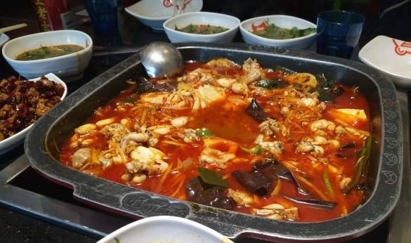 过年回老家,第一顿想吃的就是火锅青蛙。资中人都知道的晴岚小火锅,开了二十年老店,价格实惠,青蛙实在。