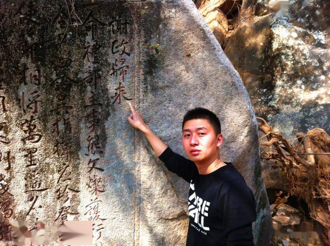 小编伍定瑞留影于叶向高《谢政归来》题刻前