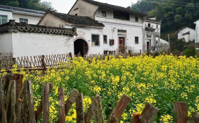 在烟雨朦胧的季节里,在这样的村子里闲逛也是十分享受的一件事。来到一间房子旁边,看着村民做着手里的活计,屋子前是一大块油菜花,鸡犬相闻阡陌交通,真的是让人沉醉其中。