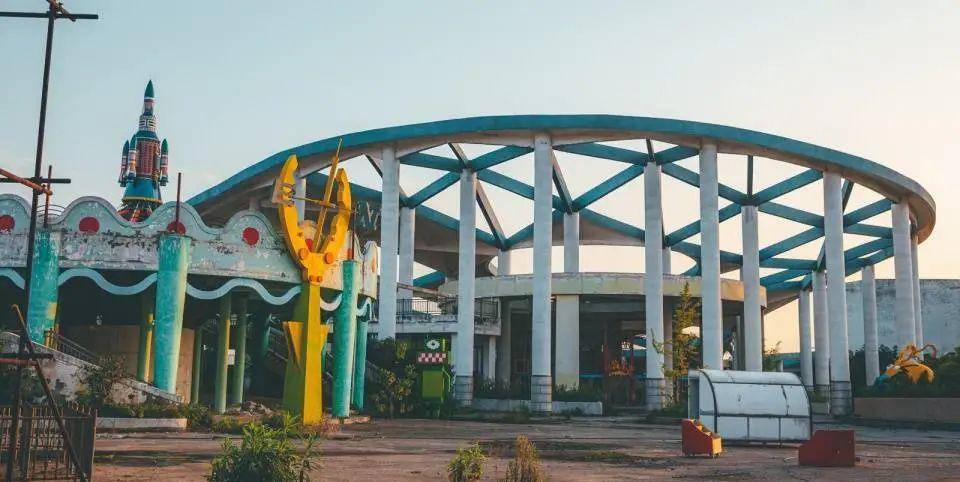 多年后,这个烂尾乐园的窘境被曝光在了公众面前,没有乐园的欢声笑语,只有一片废墟和被施工队遗弃的水泥搅拌机。