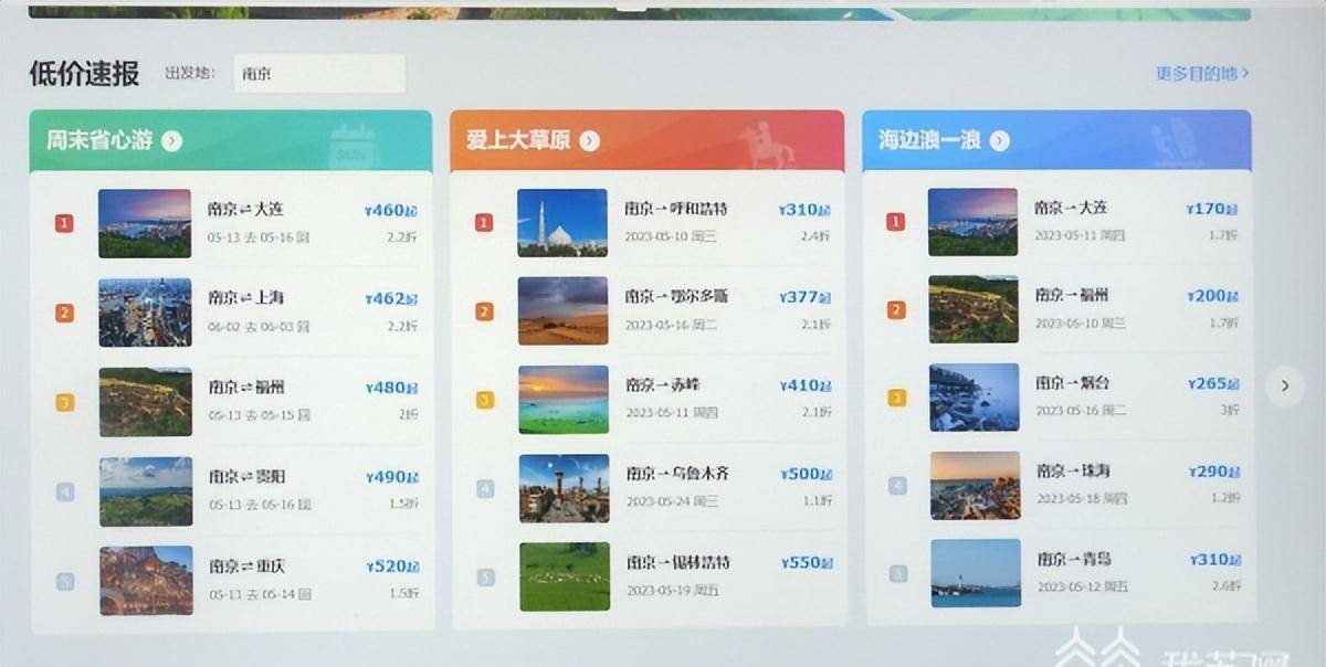 “五一”节后,国内多航线机票价格下降,甚至低于高铁票价格,出游的交通成本大幅降低。江苏省内酒店预订均价相比"五一"期间下降超2成,周边酒店预订均价较"五一"期间下降超4成。