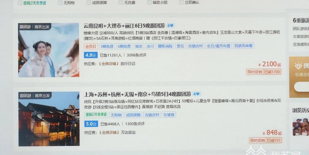 跟团游也迎来一波降价潮。携程数据显示,5月中下旬及6月初,国内跟团游产品价格普遍较五一假期下跌二至三成。广东的佛山和肇庆订单均价较五一假期"腰斩"。长白山、黄山、景德镇等地,也有20%到45%的降幅。出境跟团游价格也出现回落,泰国苏梅岛、毛里求斯和越南河内有20%-30%的降价幅度。还有部分特价捡漏产品,假期动辄上万的埃及9日团,如今价格也只需人均7400元左右。