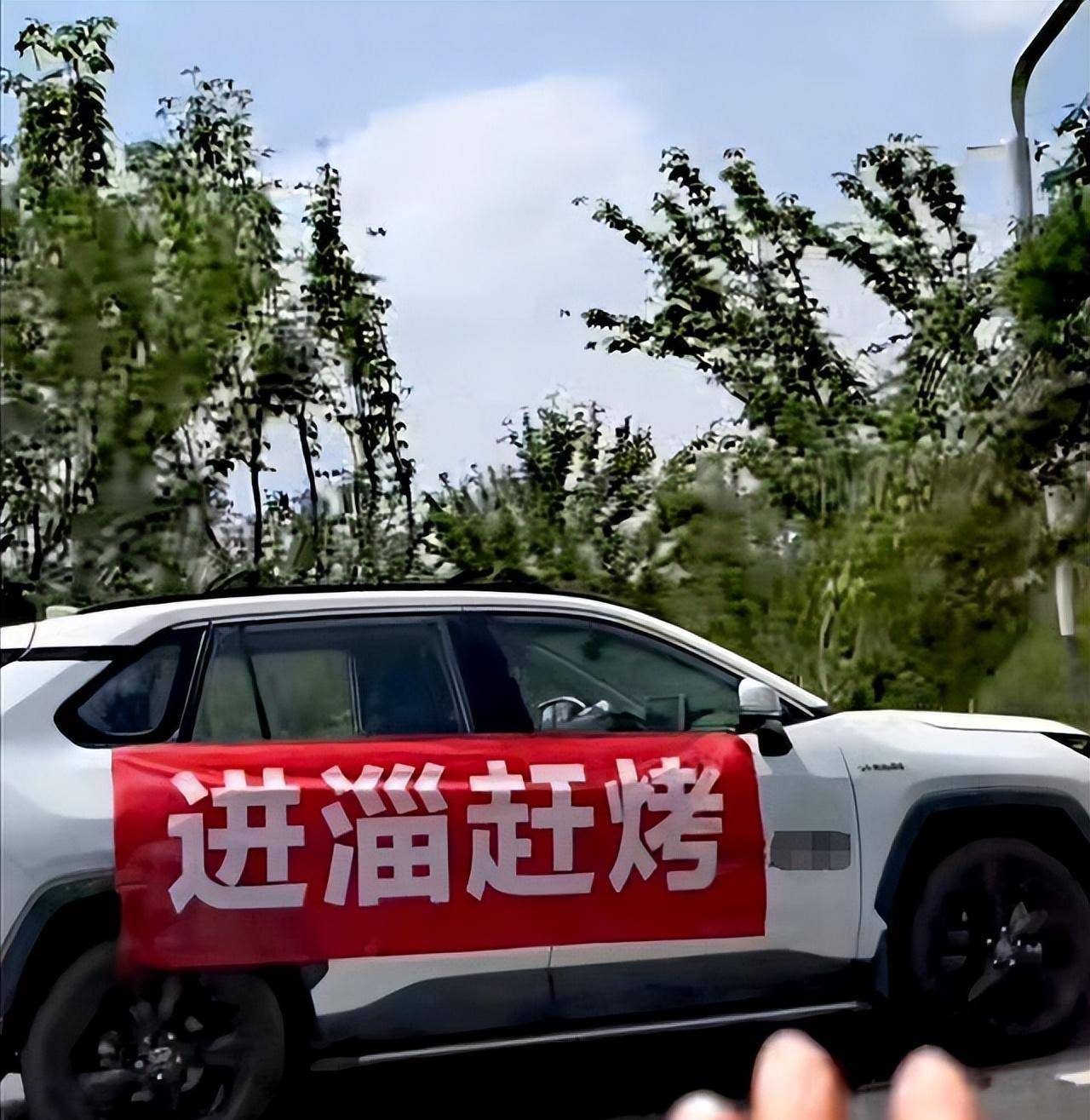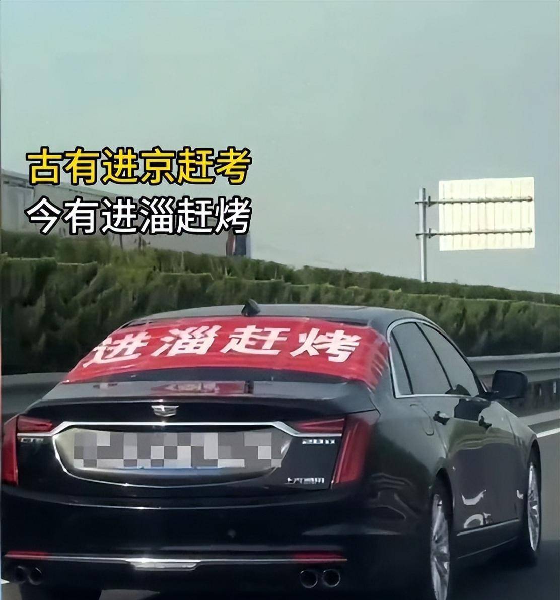 由于全国各地到淄博的高铁票早在五一前就一售而空,因此无数贴着“进淄赶烤”字样的横幅的汽车从全国各地四面八方汹涌而来。