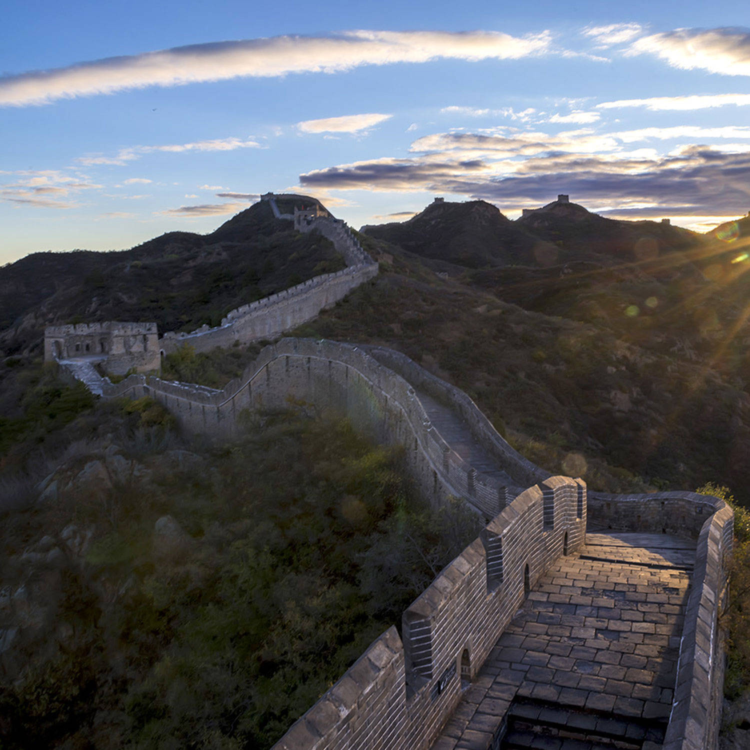司马台长城位于北京市密云区古北口镇,是明长城中保存最原始的一段,也是中国唯一一段保留明长城原貌的古长城。司马台长城因为修建在司马台山上而得名,山势险峻,关口稀少,敌楼残破,形成了一种荒凉而壮美的景象。司马台长城的特点是“野”和“险”,有些地方甚至没有台阶和栏杆,需要小心行走。司马台长城的亮点是“天井”,即一处断裂的墙体,形成了一个巨大的圆洞,仿佛通向天空。