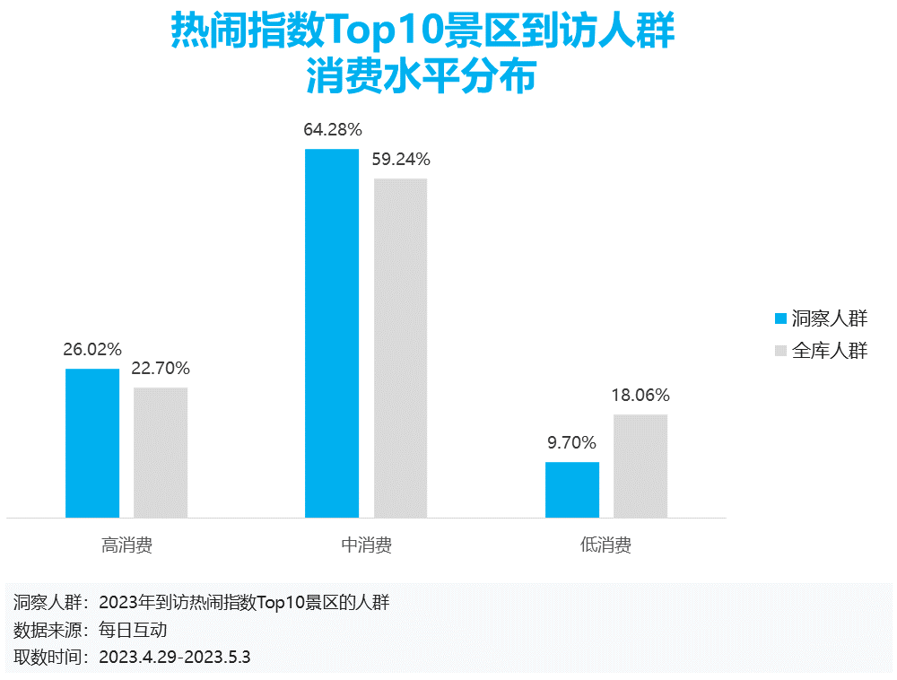 今年的五一假期出行人群中,中高消费水平人群占比明显。在2023上半年最后一个长假期,中高消费人群的消费力正在通过旅游出行的方式释放。