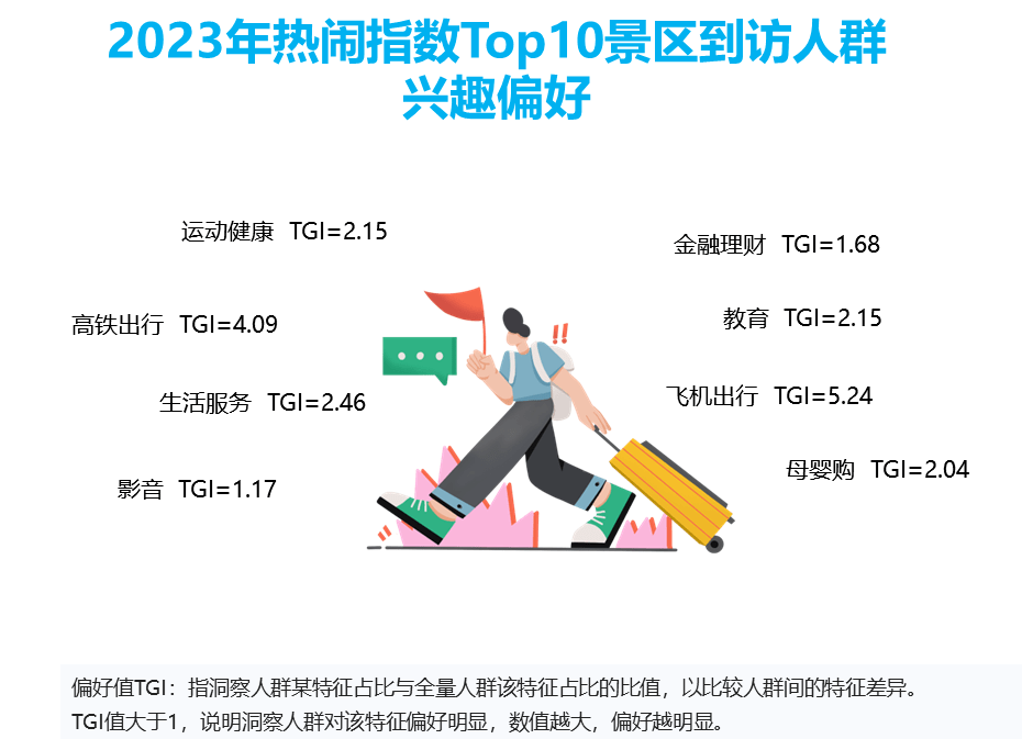此外,每日互动大数据对热闹指数Top10景区到访人群洞察后发现,到访这些景区的人群更偏爱飞机和高铁出行;同时对生活品质有较高的要求,不仅热衷于运动,保持身体健康;同时也更喜欢使用家居卫生等生活服务类App,在节省时间的同时将更多经历投入到金融理财和学习工作中。