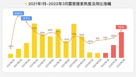 自2020年“风格露营元年”以来,年轻群体对露营的热情持续攀升,其中最受欢迎的是“最美四月天”和“金秋九月”,2022年春季,露营搜索热度更是同比涨幅高达75%。“春有百花秋有月”,春秋两季风光正好温度适宜,是前往户外露营的绝佳时机。