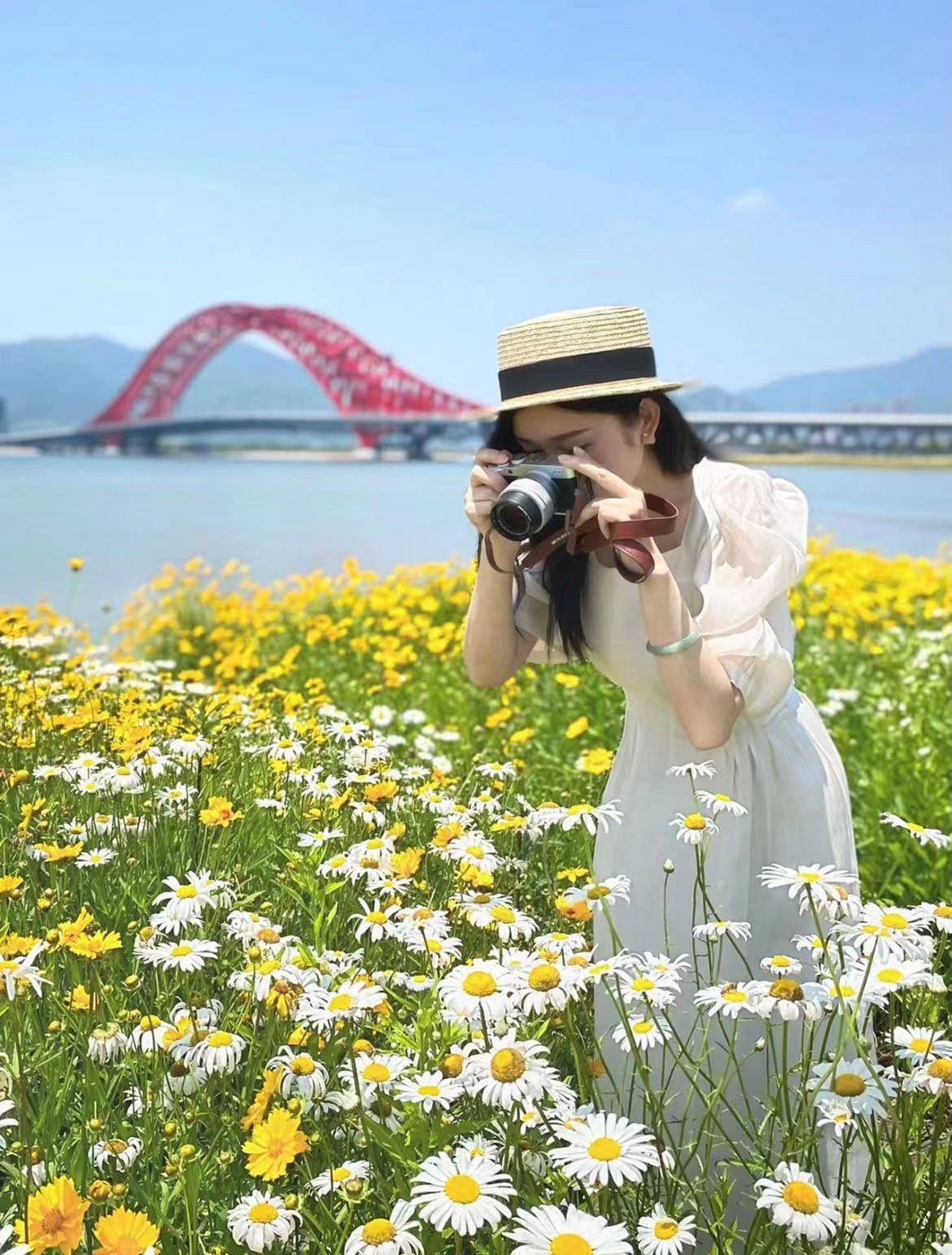 美女加小雏菊,简直太好出片了吧!大家拍摄的时候不要过度压坏花丛,可以自己带个花篮,建议穿白色裙子比较出片。
