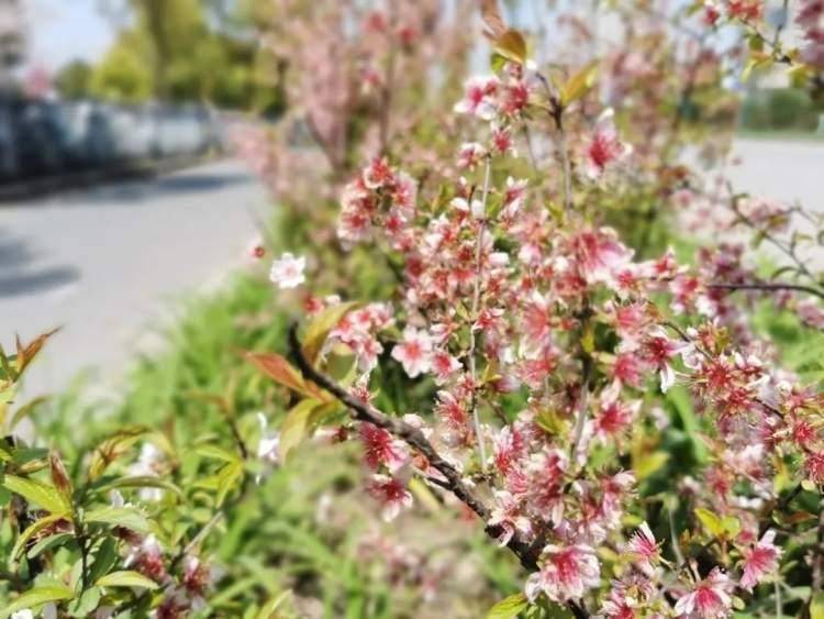今年春天,宝山的樱花、紫玉兰、红叶李等景观植物大放异彩,把公共生活空间装扮得多姿多彩。可是在这个“城市百花园”中,许多人对于帚桃、郁李这样的开花植物所知甚少。这是因为它们分布很少。如果你来到陆翔路,绿化带中的帚桃、郁李必定刷新你的“春天印象”。