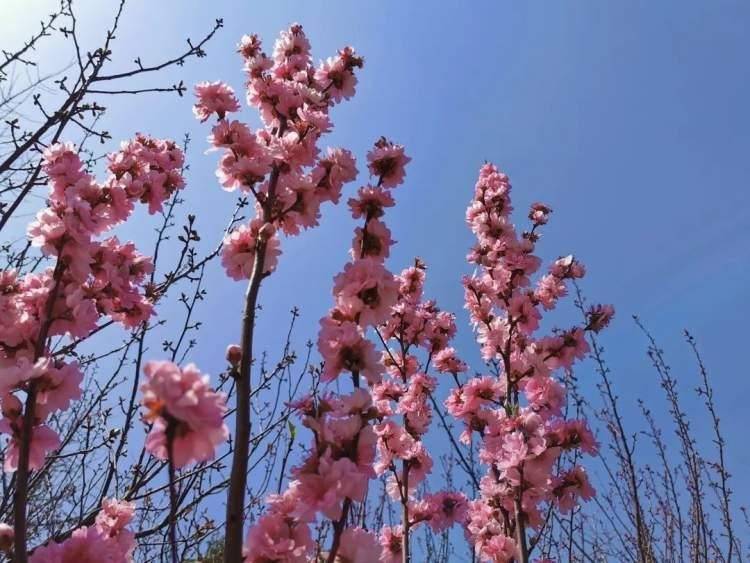 帚桃是落叶小乔木,属于桃的一个观赏品种,它的植株直立生长,所以又叫“直立型桃花”或“扫帚型桃花”,株型紧凑,自然生长,不用精细修剪,管理起来简单。帚桃的花期为30天到40天,适宜做环境及庭院美化,也适合作为园林绿化中的行道树及公路隔离带栽植。