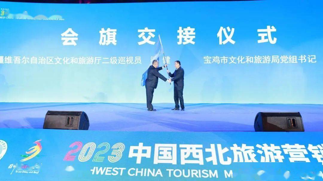 每年一届的中国西北旅游营销大会是西北旅游协作区联合搭建的促进区内旅游与全国市场对接的大型活动平台,此前已举办过八届。开幕式上举行了大会旗帜交接,新疆维吾尔自治区文化和旅游厅二级巡视员梁建代表上届举办地向本届大会主办方陕西省交旗,宝鸡市文化和旅游局党组书记、局长武云接过会旗后正式履行大会责任。