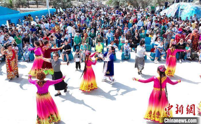 现场游客在一起联欢。 买尔孜娅古丽·阿不来提 摄
