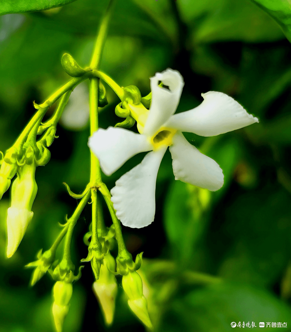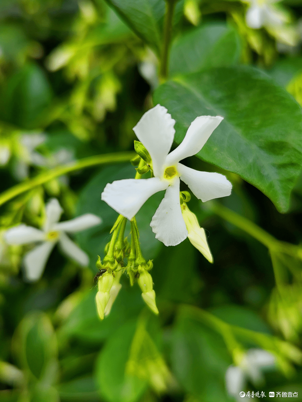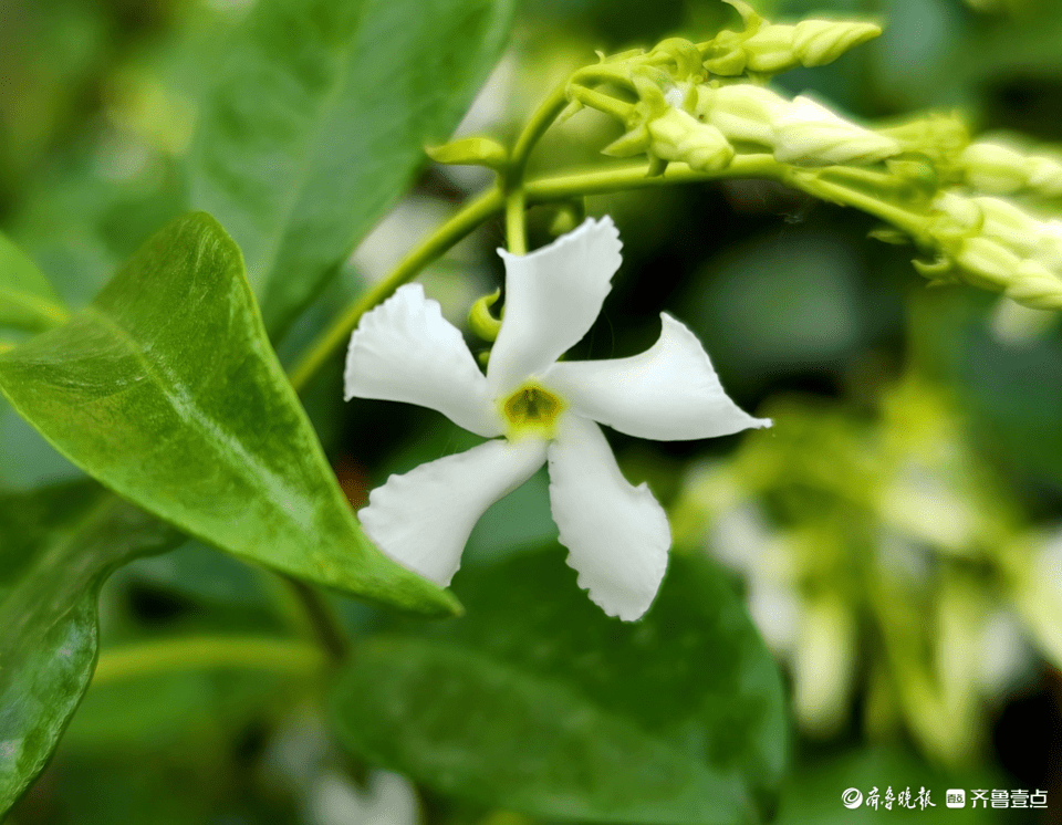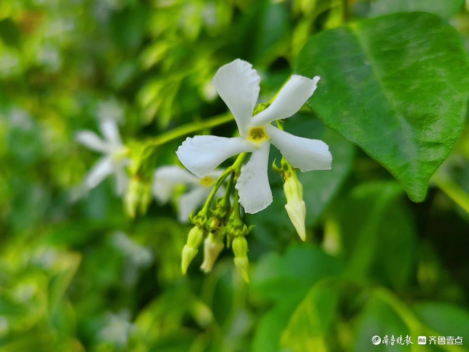 清晨,一股股浓郁的香气扑鼻而来。每逢夏日,阳台上的风车茉莉花开就散发出迷人的香气。 风车茉莉花开,就像一个小风车。微风吹来,小风车好像在微微转动,散发出阵阵香气。风车茉莉花为白色,一片纯洁,非常壮观。风车茉莉的花语象征着“品德高尚、幸福吉祥”。 高军 摄