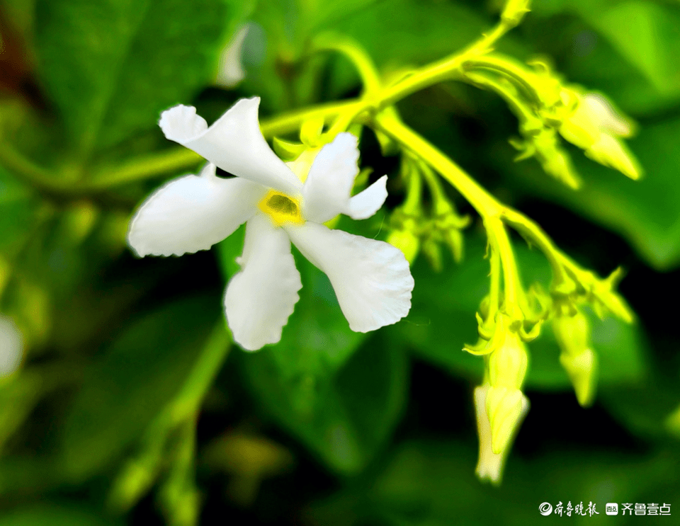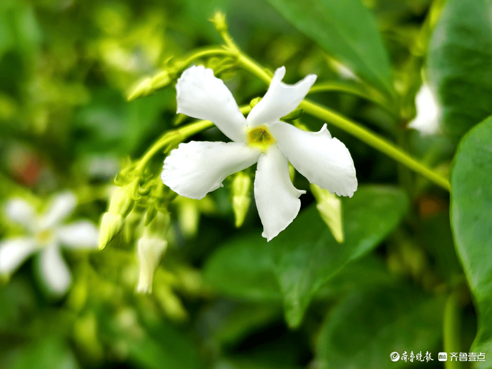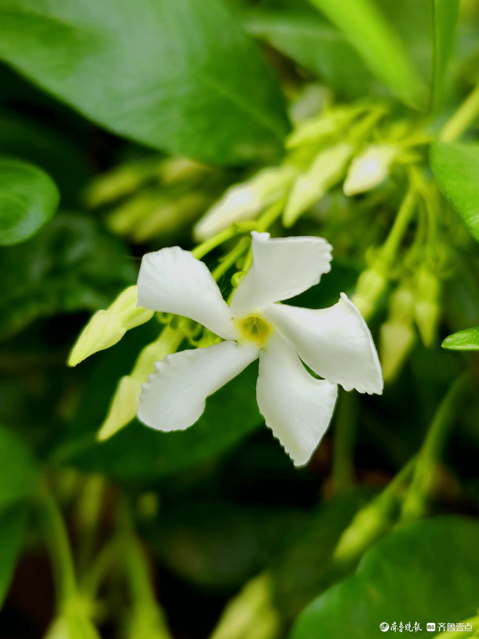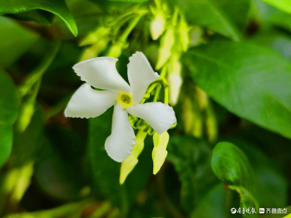 清晨,一股股浓郁的香气扑鼻而来。每逢夏日,阳台上的风车茉莉花开就散发出迷人的香气。 风车茉莉花开,就像一个小风车。微风吹来,小风车好像在微微转动,散发出阵阵香气。风车茉莉花为白色,一片纯洁,非常壮观。风车茉莉的花语象征着“品德高尚、幸福吉祥”。 高军 摄