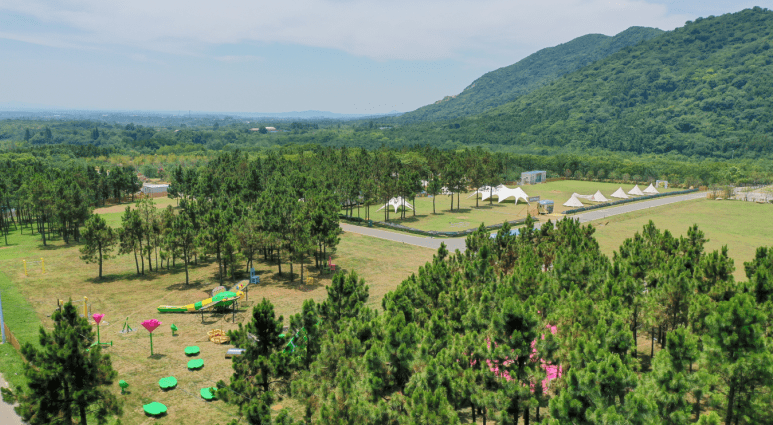浪漫夜游线:蕻野纪营地→园林场村→铁轨步道→时光列车书吧→芝麻滩梨园→登山步道→玻璃观景台