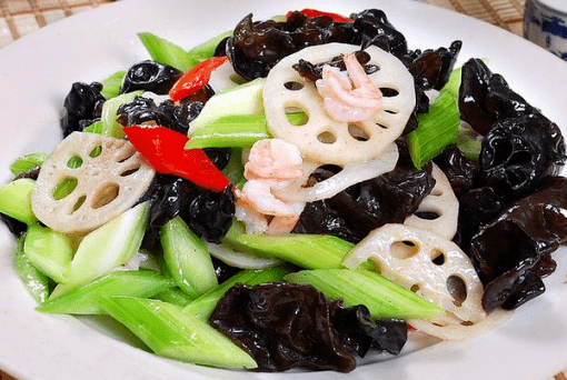 最后是服务员给推荐的清肺小炒,用山药、木耳和荷兰豆炒的绿叶菜。色泽艳丽、口感清脆,好吃上瘾。