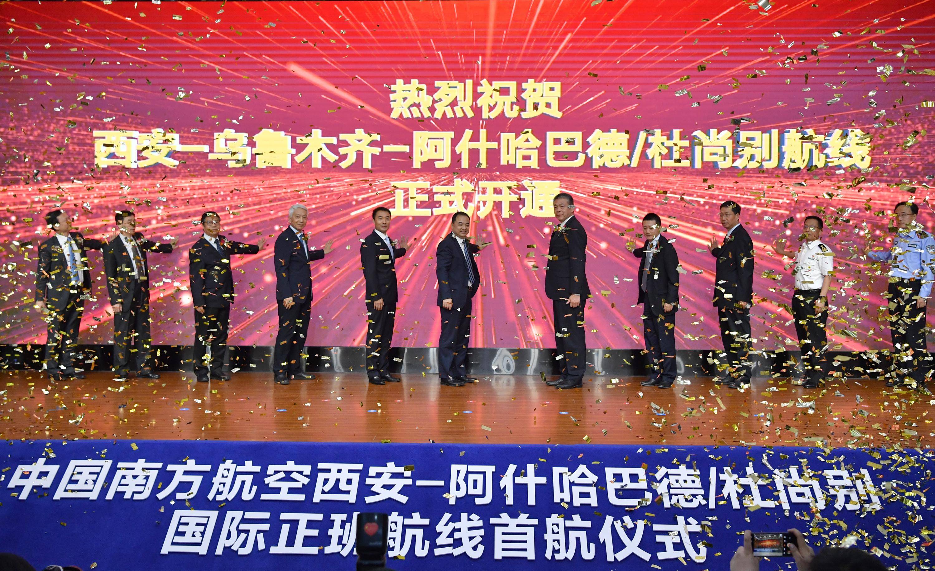 5月13日,西安-阿什哈巴德/杜尚别国际正班航线首航仪式在西安举行。 新华社记者 邵瑞 摄