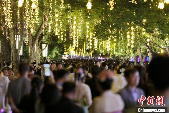 5月12日晚,华灯初上,古都西安变成了夜长安。年轻人穿着汉服在大唐不夜城、西安城墙等景点打卡拍照。衣袂飘飘的汉服搭配古香古色的建筑,仿佛穿越了千年时光。近年来,西安文旅特色IP频频“火爆出圈”,集中展示着传统文化与时尚潮流交融碰撞出的沉浸式古都游玩魅力,带动了文旅消费新热潮,西安也成为国内最具旅游热度的城市之一。