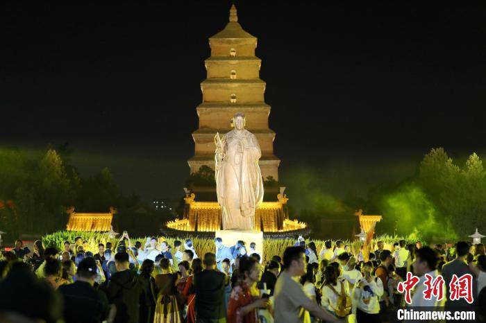 图为游客在大雁塔景区拍照留影。 张远 摄