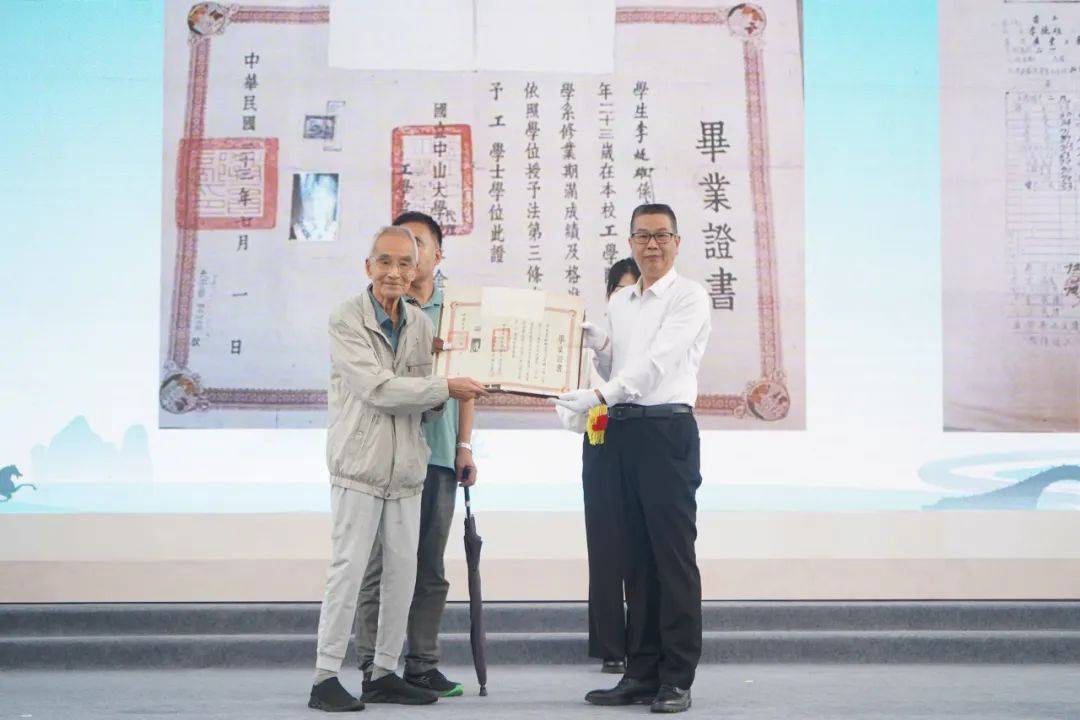 活动仪式上介绍了近年来韶关文博事业发展情况及取得的成绩。值得一提的是,国立中山大学百岁坪石学子李燧雄老人也来到了活动现场,并向韶关市博物馆捐赠国立中山大学毕业证书等办学老物件。