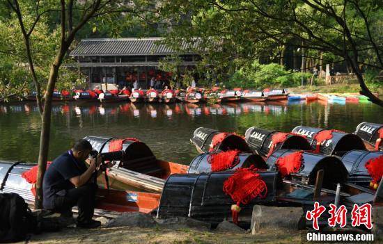 展示亚洲国家特色景点照片的乌篷船吸引摄影师拍摄。王刚 摄