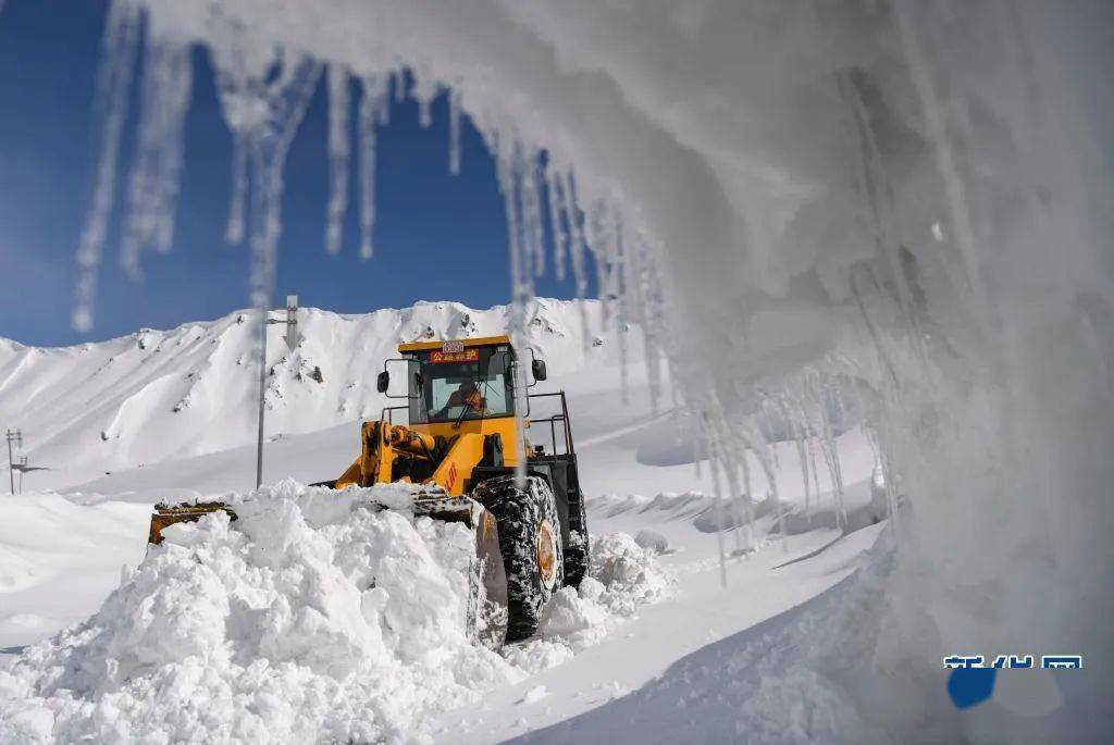5月9日,新疆奎屯公路管理局独山子分局乌兰萨德克养护站工人驾驶装载机在独库公路的雪崩多发路段上清雪。新华社记者胡虎虎摄