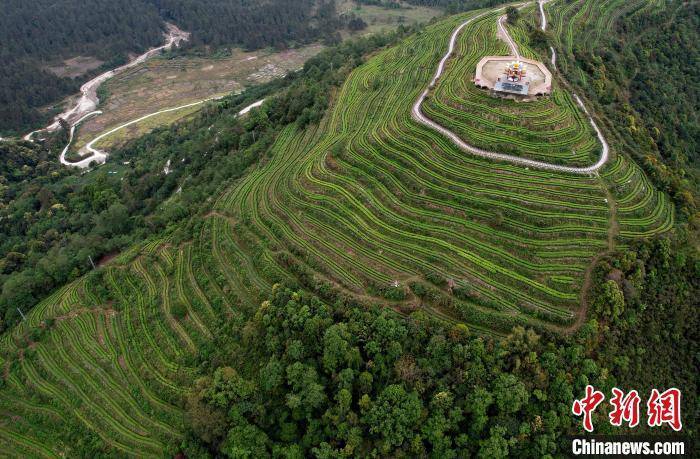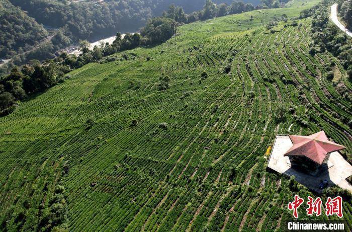 西藏林芝市墨脱县因地处喜马拉雅山脉东端南麓、雅鲁藏布江下游,湿润多雾,海拔适中,适合茶叶生长。自2012年建成第一个实验性茶园至今,墨脱县共建有百余个茶园。茶田随着山势起伏,与远处的雅鲁藏布江河谷交相呼应,成为当地民众致富的“金叶子”。