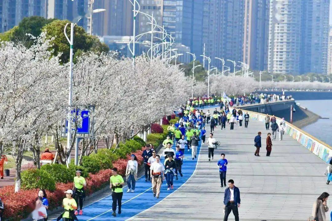 春意阑珊, 钱塘江畔的“最美跑道”人气正旺,赏樱花的游客络绎不绝,杭马、浙马相继在这里开跑。近年来,这条全长17.4公里,人文性、景观性和功能性有机统一的沿江跑道,已成为热门的网红“打卡点”,不仅在潜移默化中影响了本地居民的生活方式,而且刷新着外地游客对于传统跑道的认知,逐渐成为高新区(滨江)的区域品牌。