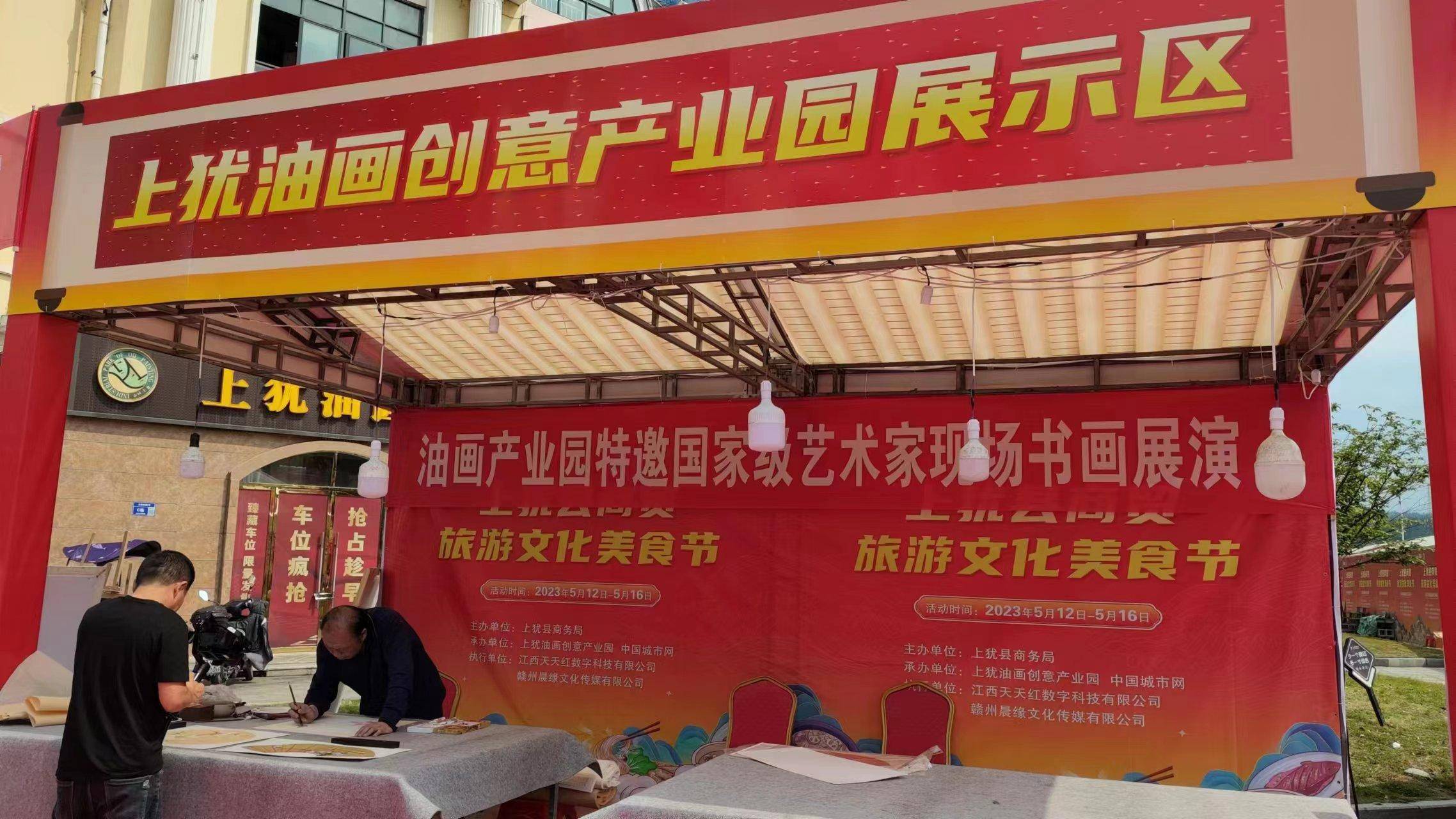 促舌尖消费,振文旅商贸。为更有效推动和丰富地方夜市经济发展,拉动和挖掘县域美食行业及其他消费潜力。5月12日至16日,由赣州市上犹县商务局主办,上犹油画创意产业园及其它相关行业协会支持承办,第一届“上犹县商贸旅游文化美食节”在该县油画广场举行。上犹县商务局党组书记、局长毛爱军;赣商联合会总会长、上犹油画创意产业园董事长陈国辉;清华大学美术学院导师、著名油画家刘晓光及十一位全国各地著名油画家共同出席参与了此次活动。开幕式当天吸引上犹及周边县域居民踊跃品鉴和现场消费。