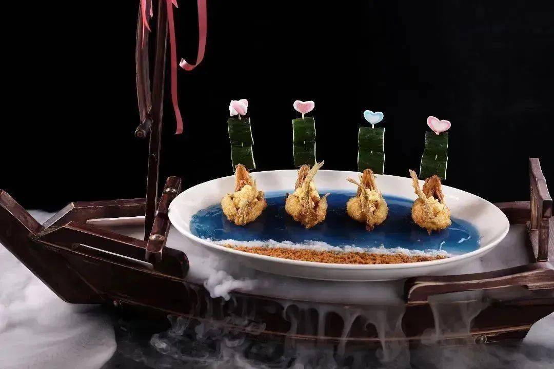 在中国烹饪文化中,虾有“龙”之寓意,此菜肴形似昂首出海的“龙舟”,穿越风涛,龙腾四海,开拓海丝新征程,形象地展现石狮作为宋元时期的“海丝驿站”,正以蓬勃奋进的风貌,迎接“涨海声中万国商”的盛景。