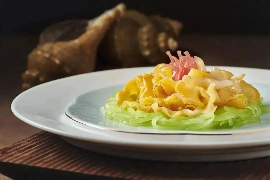 自宋元泉州海丝贸易而至现代,中国与世界的食材交流、物流日新月异,更是海丝贸易史的全新传承。此菜采用澳洲带子为主食材,以中国传统烹饪技法烹制,一道“醋椒鲜瑶柱”凝聚了时间与空间交会的舌尖记忆。
