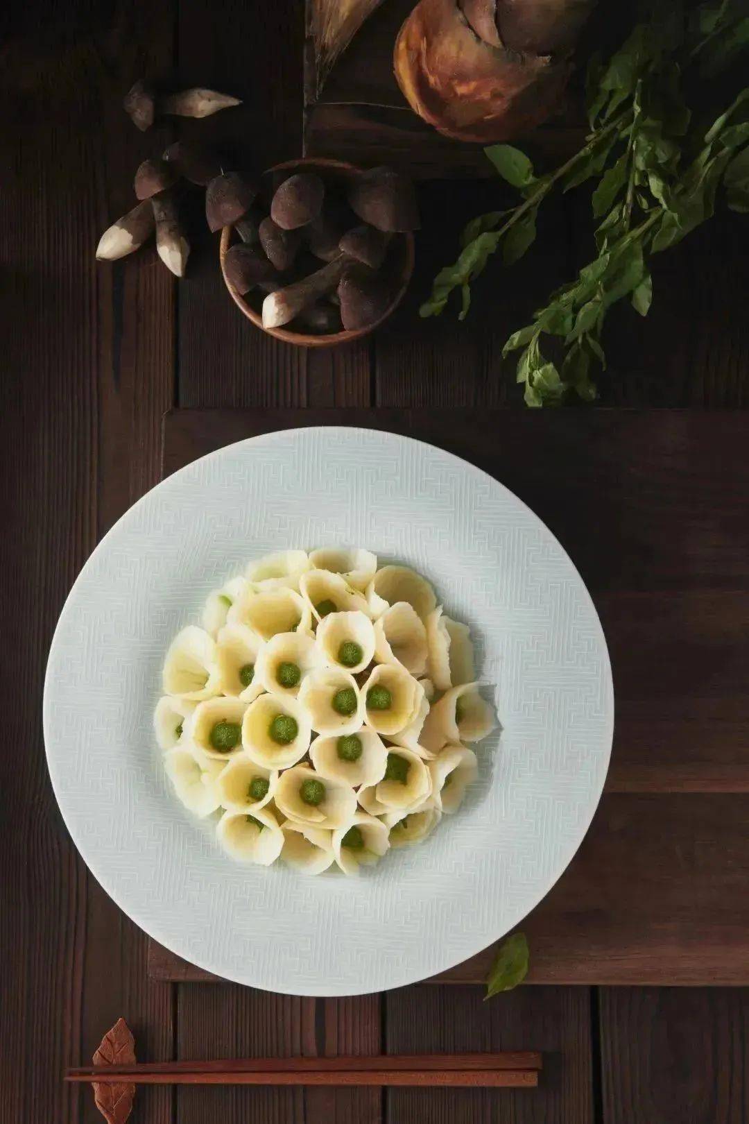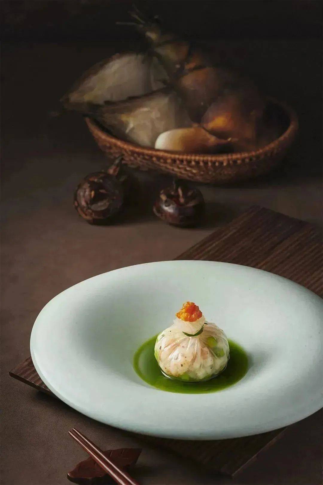 “山海兜”,取材山珍中的嫩笋与海河鲜,切后加以调味,以绿豆粉皮制作的“兜子”包起蒸制。成菜形状意趣盎然,口感复合丰富。