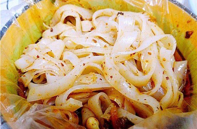 这个是蒸面皮,陕西地方特色美食,将面洗出面水后沉淀,然后舀入布罗放入开水中蒸熟,然后切条,加入豆芽、面筋等配菜,最后调入蒜水、调料汁、生抽、盐等调味品,香辣可口。今天这个是他在外面买的,因为我的胃不太好,他让老板放的辣子比较少。
