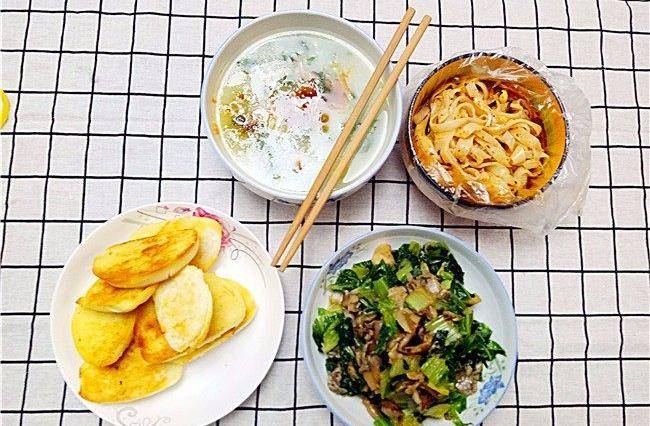 老公是一个工厂的工人,干得活也不算吃力,每个月挣3000元左右,家里到现在也没有车。虽然他挣得钱不多,但是他每天下班后,都会为我做饭吃,我觉得很满足。这个是今天的晚餐,他提前做好后,等我回来一起吃。