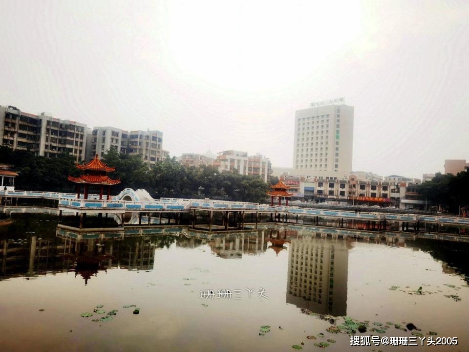 从汉谋图书馆出来,珊珊三丫头来到了对面一个很大的池塘,据说这里是唐代诗人李绅的夫人亲手所种植的荷花池,被称为古端城“八景”之一的“宝月荷香”,每当盛夏时,荷花盛开时,阵阵荷香从荷塘出来。根据街坊回忆,这里以前有上百亩地的面积,现在已缩小了许多,因为这里塘水水质清澈,会有许多小孩来到这里游泳……后来,人们希望这里能重现昔年肇庆“八景”之一的“宝月荷香”风光,在荷塘东西两边分别建造了迎曦亭和集瑞亭,周边重新种满了荷花,只是我这次来的时间,不是荷花盛开的季节,比较遗憾。