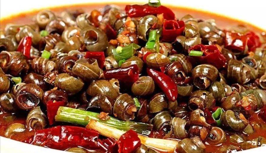 河里捡来的螺丝,经过几天的漂洗,吐干净沙子以后,就可以清洗干净,并剪去螺丝尾,开始烹饪了。配料一般有:辣椒、蒜、香叶、八角,也可以加入小块的火锅底料进行翻炒。