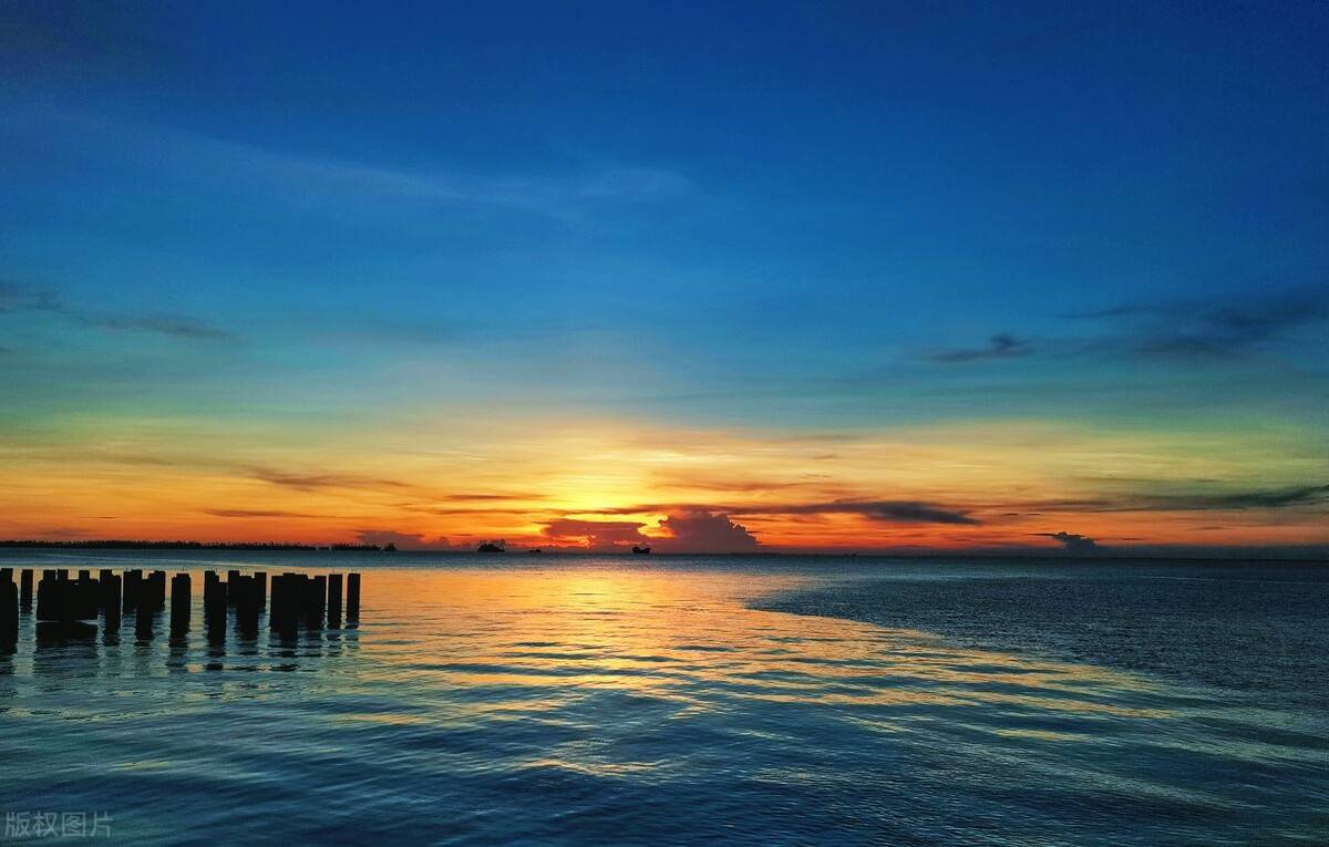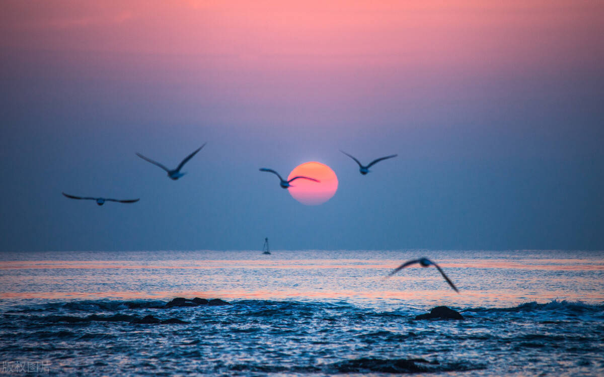大海是蓝色的,夕阳是黄色的,同一画面中,我们可以运用冷暖色调的对比,让画面达到一定程度上的平衡,这样不会让观者产生单调、沉闷的视觉感受。