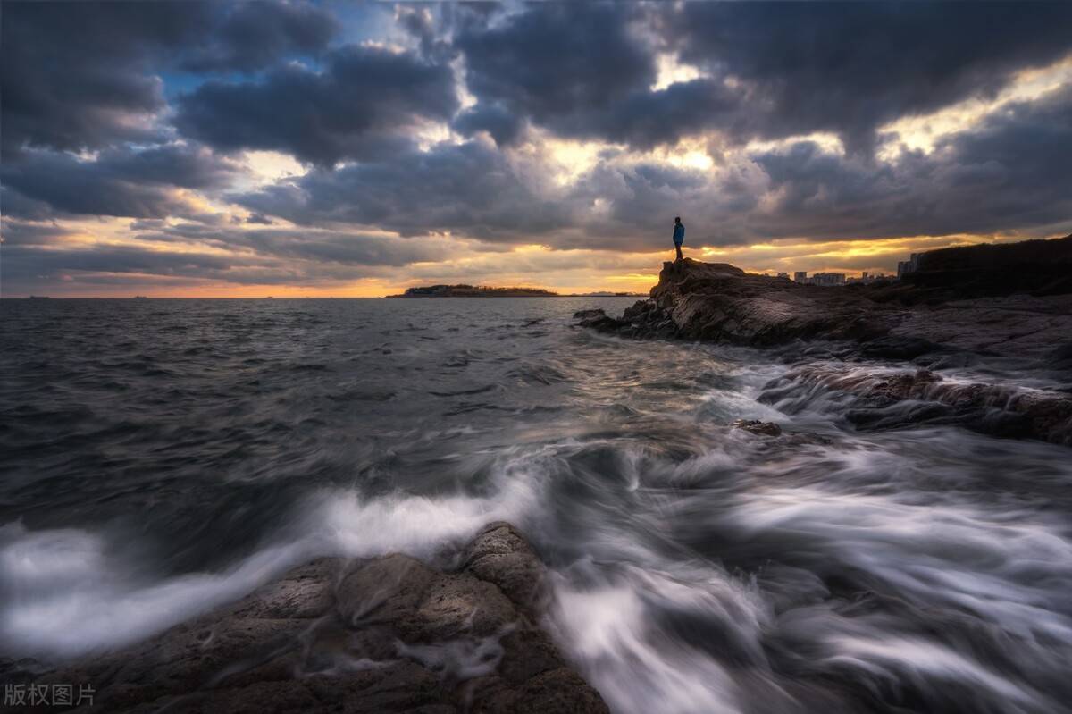 海看起来是平静的,其实是暗潮汹涌的,因此我们在拍摄海景时,可以选择拍摄一些有力量的景物,来表现海的力量感,比如汹涌的海浪、海里的礁石或是正在冲浪的人。