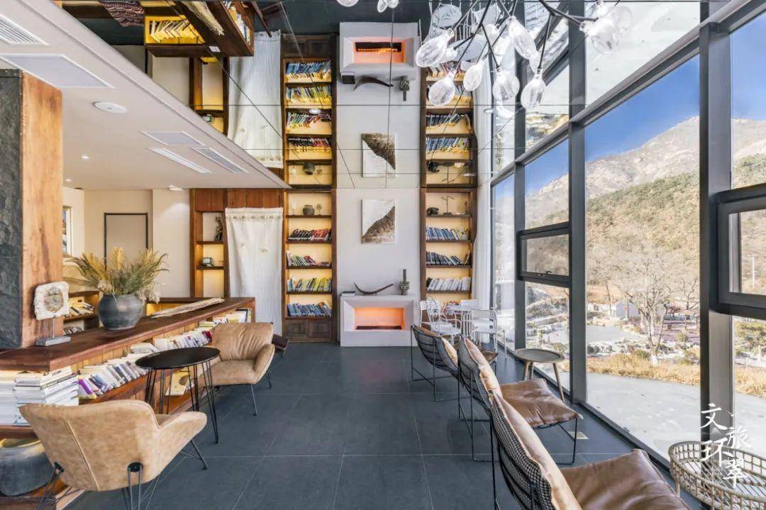 你可以在一楼点上一杯咖啡,在二楼取一本书,坐到三楼露台波西米亚风的地毯上,抬头观漫山皆翠,低头发现屋前的潭水也被映成了碧色。
