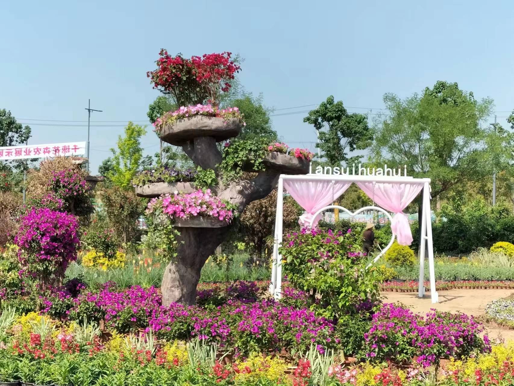 据了解,千穗花卉基地有垂吊牵牛拱门长廊 ,佛甲草、景天地植物区展示 、苏铁蕨类植物展示等几十个花卉展示区,云集了水果兰、狐尾天门冬、鼠尾草、大花飞燕草、金丝苔草、木槿棒棒糖、百子莲、蒲苇、亮晶女贞棒棒糖等70余种花境植物和发财树、平安树、幸福树家庭绿植30余种,室外草花20万盆。