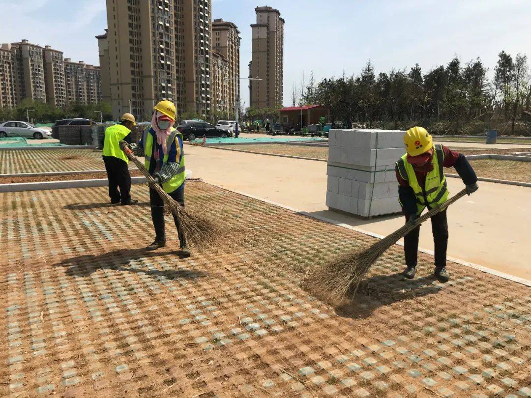 🍃在云海路与云舒路交叉口东南侧——健身园的所在地,十几名工人正在清扫已平整好的地面,这里在对原有停车位进行改造的同时,将利用现状空地,建设多功能运动场馆及篮球、足球场地,设置休憩与健身设施,打造林荫休闲空间。