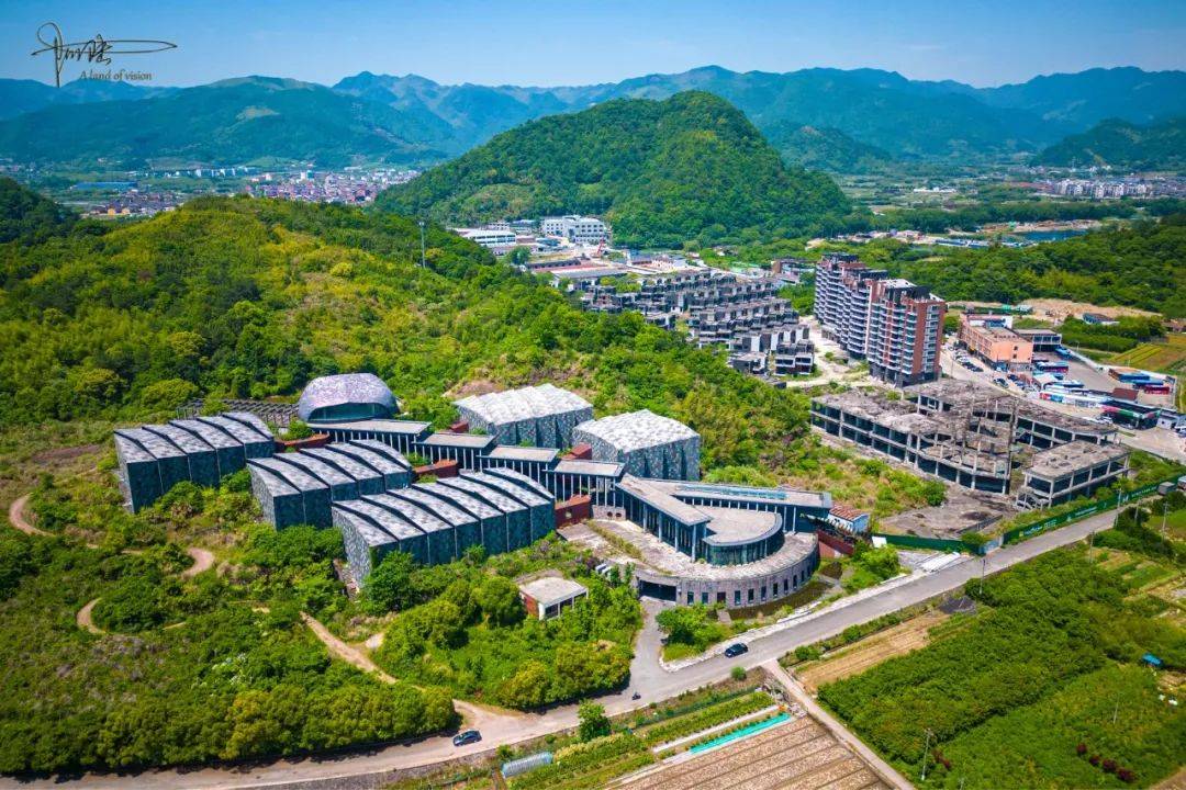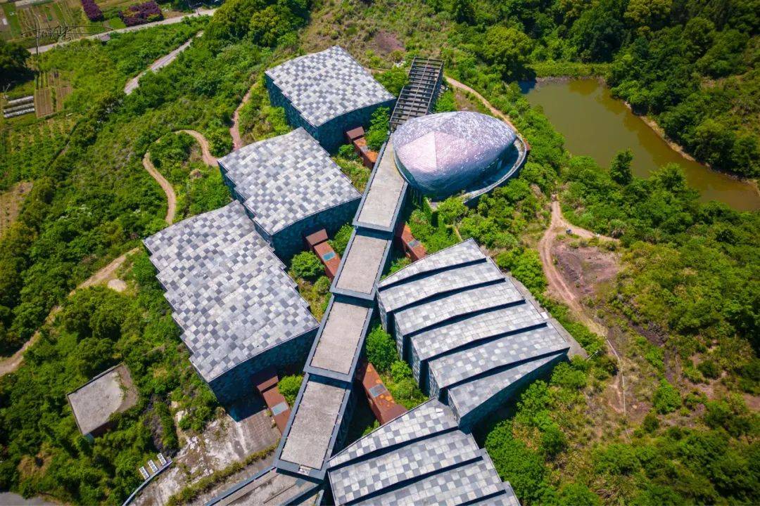 “它山艺术博物馆”的总投资额高达1.8亿,由日本著名建筑师助川刚设计。俯瞰视角下,错落有致的建筑主体似乎真有点“顺藤摸瓜”的模样,它们和周围的山体植被融为一体,既有前卫艺术和质朴田园的相映成趣,也自带若隐若现的神秘感。