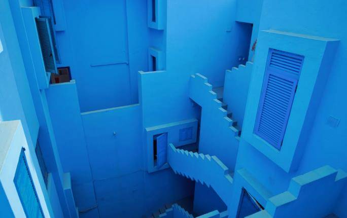 红墙是一个住宅公寓,这个建筑完全由直线和直角的轮廓构成,仿佛一个奇幻的迷宫,因墙壁的颜色多为红色,所以称之为“红墙”,但也不全是红色,更多的还有粉红色、淡粉色、蓝色、淡蓝色,满满的少女心,形成强烈的视觉效果,非常有层次感。