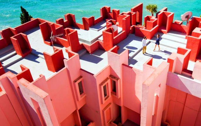 这个景点就是位于西班牙的一个建筑:卡尔佩红墙,建筑师受地中海地区传统北非城堡外形的启发,建筑内外表皮引人注目的颜色,与自然环境形成了鲜明的对比,是西班牙非常有名的“建筑鬼才”里卡多-波菲在1973年建成的,到现在已经将近47年了。