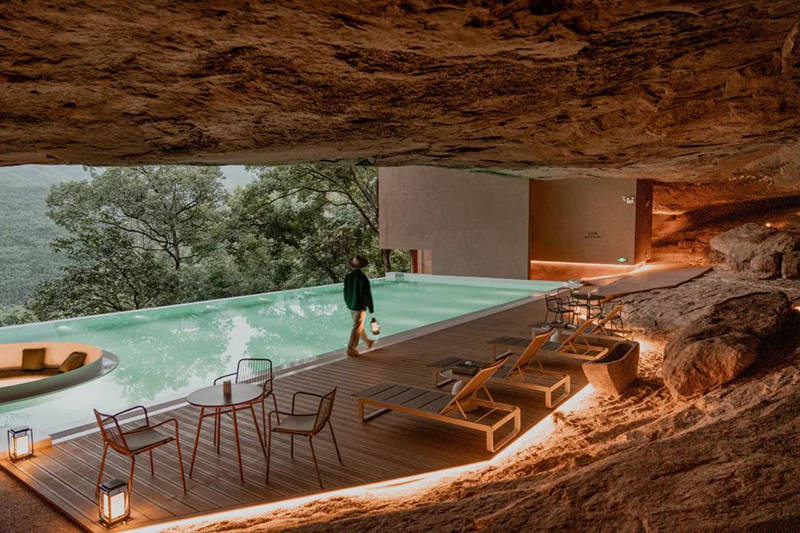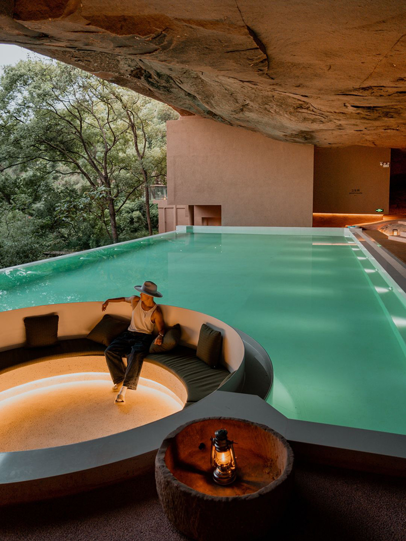 以丹霞岩洞结合现代设计的酒店「赤水匠庐·雅路古」,它的原型是一个三亿年前侏罗纪时期就形成的丹霞地貌山洞,一经建成便引发行业内热议,开业便一跃成为酒店打卡新地标。它的问世不仅填补了国内天然洞穴酒店的空白,也再一次拓展了大家对旅居的想象。