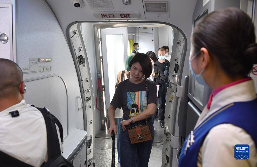 5月13日,旅客登上西安-乌鲁木齐-阿什哈巴德首趟航班。