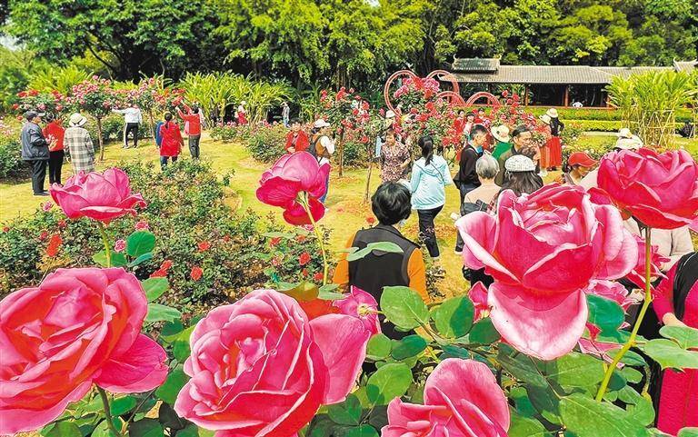 南宁市南湖公园60多个品种约2万株月季花争奇斗艳,引来众多游客赏花。潘 浩摄 (中经视觉)