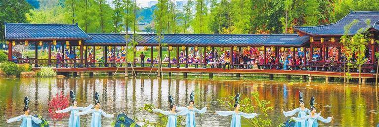 南宁市青秀山风景区,水上古装歌舞正在上演。南宁以“演艺+旅游+商业”的融合方式,带动人流量增长,激发消费活力。彭 寰摄(中经视觉)